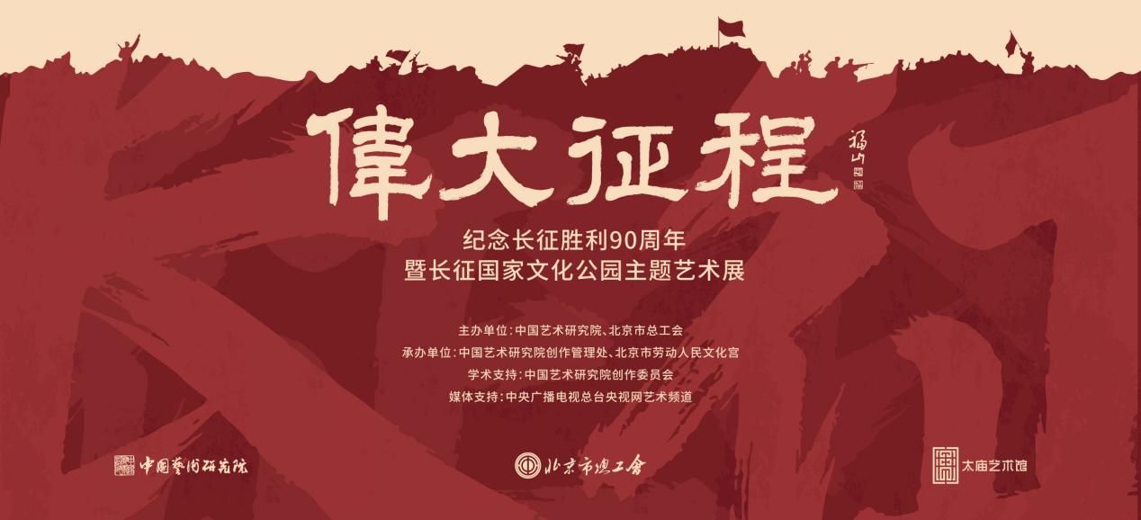由中国艺术研究院、北京市总工会主办的“伟大征程——纪念长征胜利90周年暨长征国家文化公园主题艺术展”将于1月26日在北京市劳动人民文化宫太庙艺术馆展出,展览将持续至3月1日。